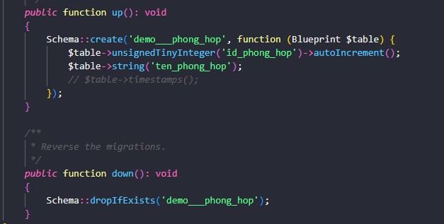 *Để chắc rằng mình đã làm đúng cho phần rollback (hàm down trong file migration), mình sẽ chạy thêm lệnh rollback và migrate 1 lần nữa để kiểm tra xem có roll back rồi tạo lại bảng bằng file migration được hay chưa. Nếu không có lỗi gì xảy ra thì mình đã làm đúng.